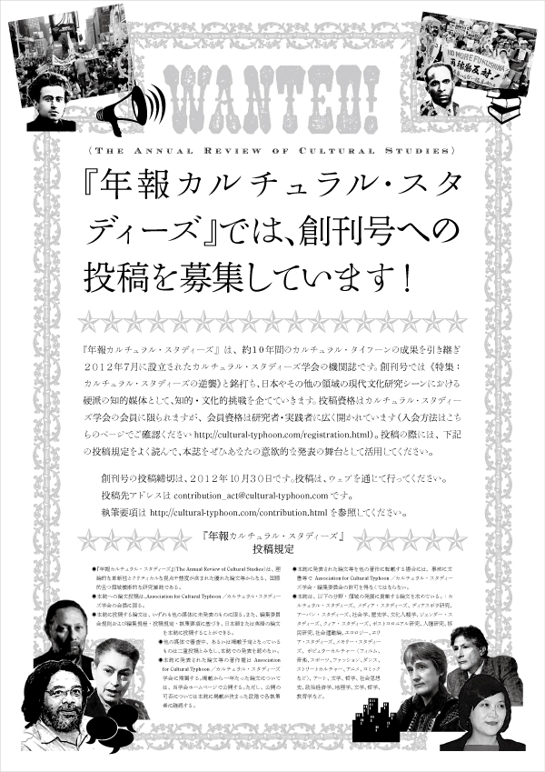 あ、最後に『年鑑カルチュラル・スタディーズ』のフライヤー作りました。当日主催者が配る予定です。